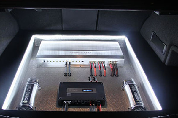 丹麦丹拿发烧级汽车音响改装中:宝马尾箱灯光工艺展示